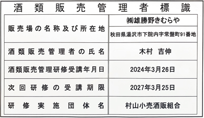 | 酒類販売管理者標識 |